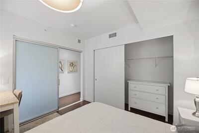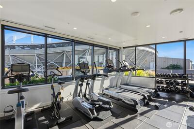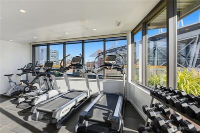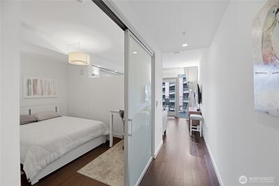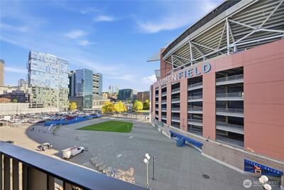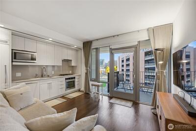 Stylish one-bedroom blends vintage charm with modern design in the heart of Seattle lively cultural and sports scene, featuring floor-to-ceiling windows, quartz counters, premium appliances with gas range, central A/C, and in-unit laundry. The open layout maximizes light and space. Generous full-bath. View deck off living room. Enjoy luxury amenities including 24/7 concierge, fitness center, wine lockers, pet run and wash, and a stunning rooftop deck with sweeping city and Sound views. With a Walk Score of 93, secure entry, and no rental cap, you’re steps from stadiums, waterfront, dining, theater, transit, and the revitalized Railroad Way—an ideal in-city home or investment opportunity.