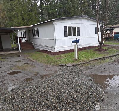 Beautifully remodeled manufactured home offering a bright, open floor plan with vaulted ceilings and recessed lighting. The stunning kitchen showcases quartz countertops, a quartz island breakfast bar, and modern finishes, complemented by LVP vinyl flooring throughout. This home features 3 bedrooms and 2 full bathrooms with thoughtful updates. Step outside to a large wood porch, perfect for entertaining or relaxing, and enjoy the convenience of a carport and storage shed. Stylish, functional, and move-in ready. No age restriction.