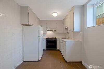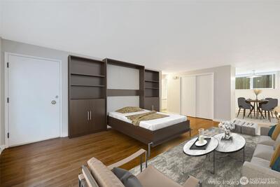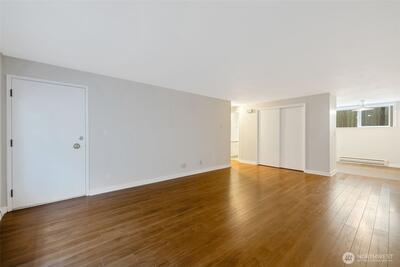 LOCATION, LOCATION, LOCATION!!! Light and bright, lower level private and quiet Phinney Ridge studio condo with private reserved parking and low HOA fees. New engineered hardwood flooring and interior paint, open floor plan. Kitchen with dining nook, full-bath, 2 in-suite storage closets. It's all about location! You are in the heart of Seattle with a high walk score and everything within a few minutes walk. Restaurants, shops, bus line, Greenlake, Woodland Park Zoo, parks. Well run HOA. Why pay rent when you can own. Only unit in complex with grandfathered rental ability!