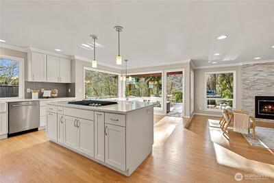 Showcasing over $200K+ in upgrades, this beautifully renovated Buchan-built home is a true testament to timeless Northwest craftsmanship. Offering sophistication, comfort, and enduring quality, it sits on a private cul-de-sac and backs directly to serene greenbelt open space giving you immediate, private access to nature right from your backyard. Just a 3-minute walk to the lake, this home puts kayaking, paddle boarding, and fishing at your fingertips. Step out your back gate into the greenbelt for peaceful trails and effortless connection to the outdoors - the ultimate Sammamish lifestyle. Inside, premium updates include a 50-year Presidential roof, new central AC, new water heater, and new carpet. The gourmet kitchen features newer appliances and a gas cooktop, opening seamlessly to the grand family room with its striking stone fireplace. Large windows frame peaceful views of the secluded, tree-lined backyard - the perfect setting for summer BBQs, relaxing soaks in the hot tub, or al