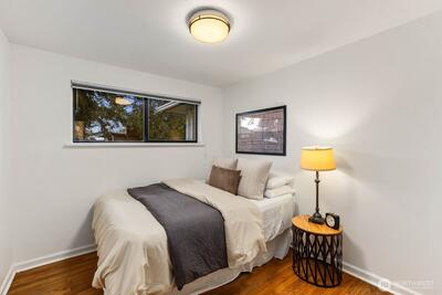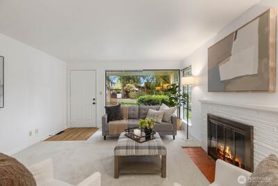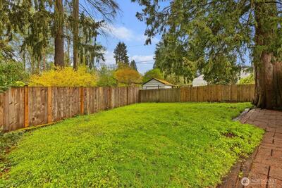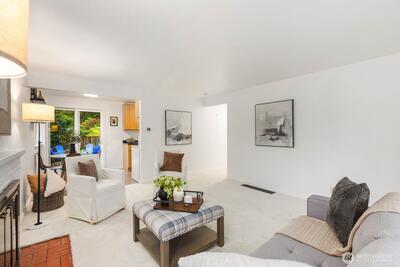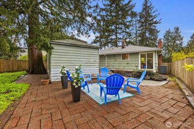 Welcome home to this beautifully refreshed 3-bedroom, rare one-level rambler in Seattle! Step inside to discover a bright, inviting layout with new paint, new carpet, and classic hardwood floors in the bedrooms. The home features a light, bright bathroom with brand-new vanity, mirror, and cabinet, three spacious bedrooms, kitchen with eating nook, and living room with wood burning fireplace. Year-round comfort is completely covered with heating and cooling. Enjoy the luxury of summer A/C with a heat pump paired with a reliable Thermo Pride furnace for ultimate winter comfort and peace of mind. Outside, your home is wrapped in rare and valuable old-growth cedar siding. The expansive, fully-fenced, flat backyard is a rare city find; a perfect retreat ready for summer BBQs, gardening, a possible DADU (buyer to verify), or simply relaxing in your own private oasis. A detached garage with alley access can be used for whatever you most need: parking, storage, or even a hobby workshop. Conven