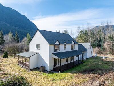 Majestic Colonial-style home on five secluded acres—an updated country estate offering 3,744 sq ft of space and versatility. Featuring 3 spacious bedrooms plus multiple flex rooms ideal for a home office, bonus/media room, guest space, or hobby studio (see floor plans). Move-in ready with extensive updates, including a new roof and gutters, fresh interior/exterior paint, new LVP flooring and carpet, newer HVAC with A/C, and refreshed fixtures, hardware, doors, and millwork. All appliances stay for an easy transition. Enjoy true outdoor living with a generous covered front deck and an additional back deck—perfect for relaxing or entertaining year-round. Located directly across from the Tilton River, known for salmon and steelhead runs, with nearby opportunities for kayaking and whitewater rafting. Just a few minutes from town and all amenities.