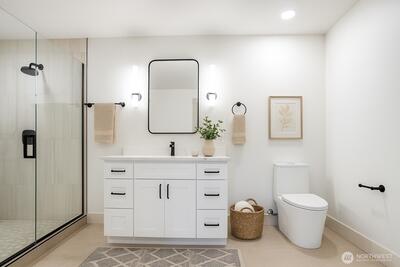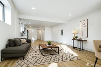 Modern studio suite with a private entrance, full bath, kitchenette, and a flexible open layout designed for comfortable everyday living. Newly completed with quality finishes throughout, this space functions well for guests, extended living, or as a personal retreat. Located minutes from major Seattle amenities, transit, and shopping. A practical and well-designed ownership opportunity.