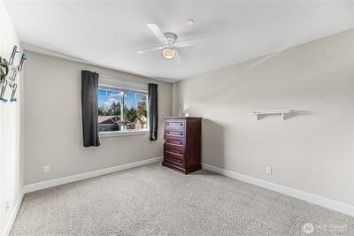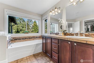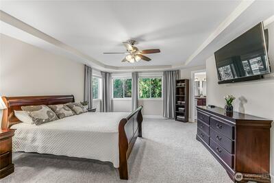 Discover a lifestyle where comfort, nature, and community come together in Bohemian Estates. This gated enclave of custom homes offers peaceful Northwest living- enjoy kayak launches from the private lake access, impromptu games at the resident only sport court, or enjoy your favorite beverage on your covered deck where you may spot deer, herons, geese, ducks or even an occasional eagle. Inside, nearly 3,000 sq ft welcome you with spaces designed for easy living and effortless hosting. The chef's kitchen is complete with granite counters, ample storage, walk-in pantry and center island/breakfast bar. The open design Great Room is perfect for everyday living and entertaining. The theater room can accommodate up to 10 reclining chairs or it can easily be converted back to a huge bonus room. Air conditioning and thoughtful upgrades throughout add everyday comfort. Wake each morning in the oversized primary suite with spa-inspired bath and custom closet. Guests will enjoy the main floor b