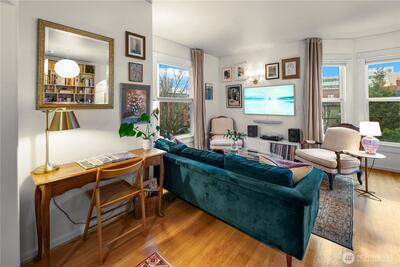 Cooperative urban living at its finest! Design forward, ultra functional, affordable, and cozy, this unit has everything you need for living your best life on top of Capitol Hill. Large kitchen with Bertazzoni induction range, tons of shelving, and plenty of prep space for even the most discerning home chef or baker. Views of the space needle from the gorgeous bay windows with NW exposure allowing ample light throughout the year. Unbelievable amounts of smartly laid out storage in every corner, built in cabinets and shelving throughout. Space for absolutely all of it. Each portion of the home perfectly balances comfort, efficiency, and aesthetics. Laundry in building is free and machines are brand new. Bike storage + 9.8/10 Walkscore!