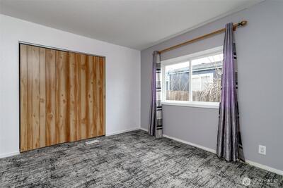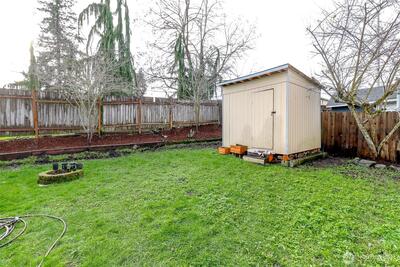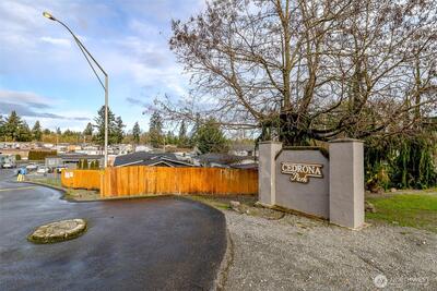 All Ages Park!! Step inside this renovated 3 bedroom, 1.75 bath home complete with a large & open concept floorplan with vaulted ceilings. Spacious updated kitchen, LVP & engineered hardwoods, new carpet, private primary suite, newer roof (2023), newer exterior paint (2024), updated bathrooms & vinyl windows. The private and fully fenced backyard has it all and is an entertainer's dream! Newer shed (2019), firepit, fully landscaped and garden beds. Space rent will increase to $1,100/mo plus water after new owner takes possession. Septic pumped & maintained by park. Dogs (2) and indoor cats permitted. All appliances stay! Minutes from I5, JBLM, shopping, restaurants and more. Financing Options Available! Chest freezer does not convey.