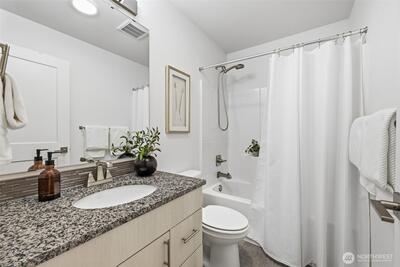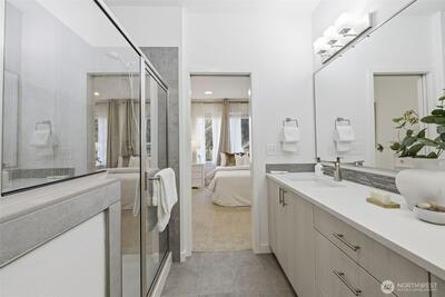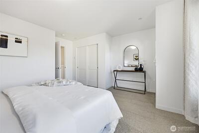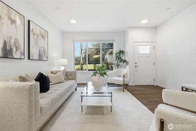 Wake up to park views in this park-front Crossroad home w/ no neighbors in front & surrounded by greenery. Quality built in 2019 by William Lyons, this light-filled home lives like a single-family w/ MAIN LEVEL ENTRY, open kitchen, living, dining & A/C. Enjoy morning coffee or evening sunsets from your private balcony overlooking the park. Ideal layout offers TWO en-suite bedrooms w/ flexible loft perfect for office, gym or media space, or use as a full THIRD LEVEL PRIVATE SUITE w/ its own living room, bedroom & full bath - perfect for guests or multigenerational living. Quartz counters, gas range, SS appliances. Oversized 2-car tandem garage. Next to mall, parks, dining & golf. Mins to Microsoft. Pre-inspected, low HOA. NO rental cap!