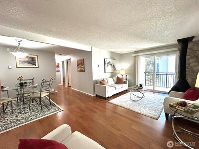 Fabulous top-floor unit in Bellevue Highlands. Granite countertops, and porcelain tile floors in the kitchen and bathrooms. Harwood floor in living room and bedrooms. Range is brand new. Enjoy the wood-burning fireplace on winter evenings. There is a lot of storage space inside the unit. It is within walking distance to stores, shops, and restaurants, minutes to freeways, downtown Bellevue/Kirkland/Redmond, across the street to Microsoft Campus, 7 minutes to Amazon in downtown Bellevue, half a minute to 520 hwy, and 5 minutes to I-405.