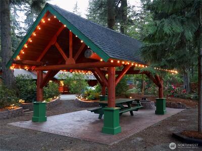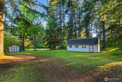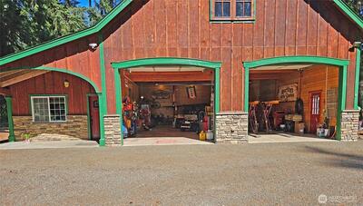 Spring Price Reduction! Blooms are coming out and the landscaping color is starting to pop. Park-like retreat features majestic fir trees surrounding this cedar sided beauty. 4+ bedrms, 2.5 baths + office and bonus rooms that could be additional bdrms but septic only approved for 4. Cozy, bright home with great kitchen workspace, center Island. Efficient heat pump + warm wood heat for those crisp NW evenings. High-quality crawl space insulation helps keep utility bills lower. Need space to work or create? Executive-quality office within the workshop has decor' knotty pine interior walls. Ideal for remote work/small business. Outstanding shop space for mechanic work with tall ceilings and car lift. Secure RV storage adequate for 40' RV. Shop is well lighted and heated! LOTS of upperstairs storage accessed by wide, thickslab wood staircase. Shop is also fully finished inside with gorgeous knotty pine walls. 6 acres ideal for yard games, pets, livestock. Entertain guests wi BBQs under the