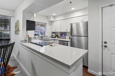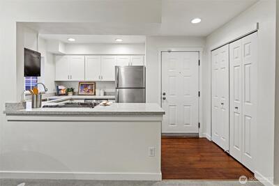 Sought-after Bellevue living at its finest in this thoughtfully designed 2bed, 2bath private end unit! Easy stair-free access + secure individual garage adjacent to front door. Inside, you’ll find tastefully updated BRs & kitchen w newer cabinets, quartz counters, induction range, new dishwasher & water heater. Enjoy a cozy wood-burning fireplace, full size W/D, newer carpets, & fresh paint. French doors lead to a private balcony overlooking lush PNW greenbelt, ideal for entertaining or peaceful moments at home. Mins to DT Bellevue, top-rated schools, Lake Washington Blvd, 405, i90, Light Rail station + metro. Outdoor lover’s dream—endless Mercer Slough trails and boardwalk just outside your door. Community clubhouse w gym + sauna!