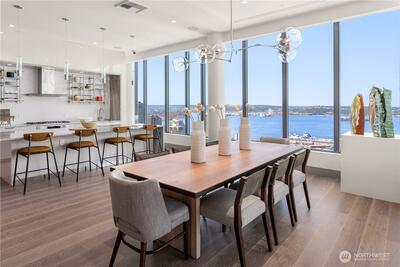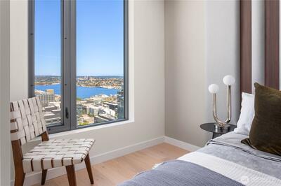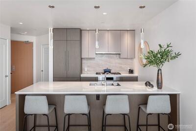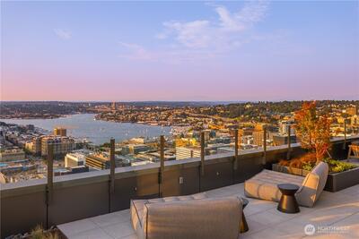 Spire Condominiums, at the apex of Belltown, South Lake Union, and Denny Triangle, offers iconic Space Needle and water views unlike any other new condo building in Seattle. This coveted location allows easy access to retailers, restaurant/bars, technology centers, arts, outdoor recreation and entertainment. Rising high at 41 stories of incredible living spaces including this large 1 Bed/1 Bath with Needle, SLU, Mt Baker views + kitchen with Bosch appliances, island, bedroom fits king bed, parking. Amenities include concierge, top floor fitness center, pet run, 40th floor clubroom, dining, terraces, co-working space, conference room, theater, movement studio + more. Buyer must register broker on first visit. Ask about Winter Rate Incentive!