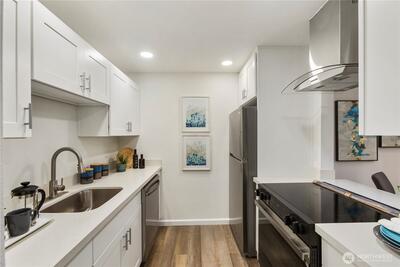 Top Flor unit, with brand new kitchen and stainless steal appliances, big size living room with a fireplace and a balcony with view of the garden, two bedroom two bath condo, both bedrooms good size, with washer and dryer in the unit, a two car garage spots to top it off and all these in the great location with well run low cost HOA. No rental Cap, near shoreline CC, shops and restaurants.