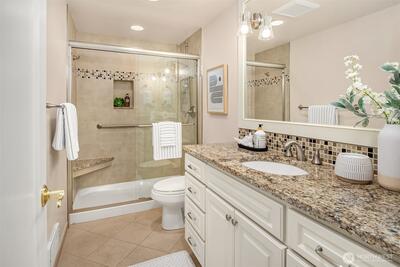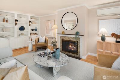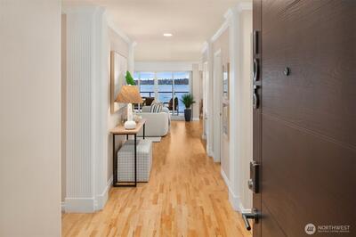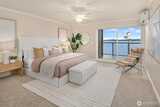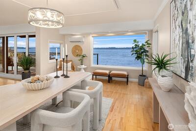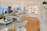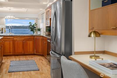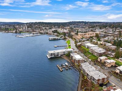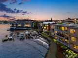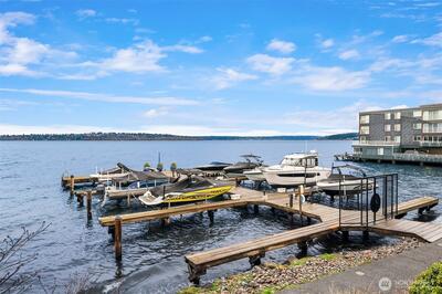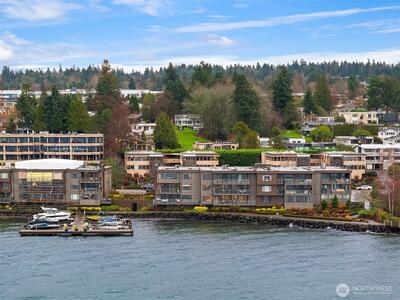 VIEWS!VIEWS!VIEWS! Enjoy the ever changing amazing sunset, lake & Olympic mntn views. Discover elegant living in this 3bed/2.5baths, elevated residence featuring a spacious floor plan. Perfect for entertaining. Views from your chefs kitchen, living, dining room & primary suite. SS applcs package, w/den off kitchen. Built-ins throughout for display & storage. The lakeside primary suite offers serene views, a generous walk in closet & a generous ensuite. Convenience is unmatched for boating, 1 level living. Freshly painted. 3 secured parking spaces (EV too) & 3 storage units, 13x10 storage,2 6x4, one on deck. Lakeside living is complete w/HOA-owned moorage available (wait-list basis). Stroll ‘The Boulevard’ to quaint downtown in 10 minutes.