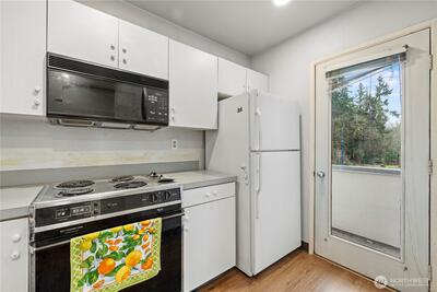 Refreshed 2 bed/1.5 bath condo inside and out, overlooking the private Inglewood Golf Course in Inglewood Village III. End unit with great floor plan, in a highly desirable neighborhood. Affordable Eastside living for under $500K! Private garage. New flooring just installed. Excellent location close to shops, schools, parks, Lake Washington, bus routes in all directions. Saint Edwards State Park just up the hill. Hurry this one will sell quickly!