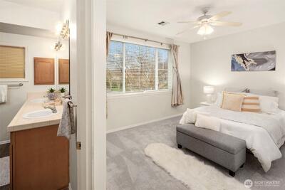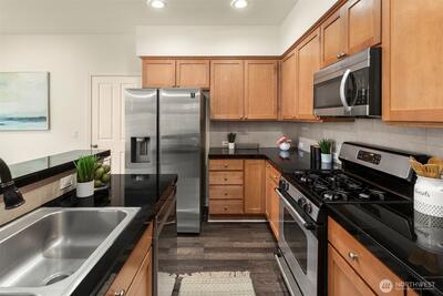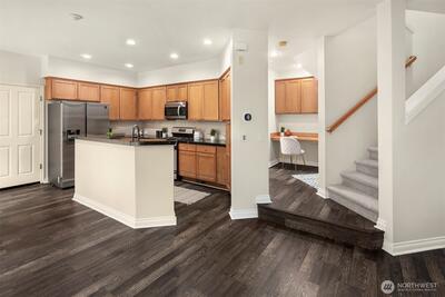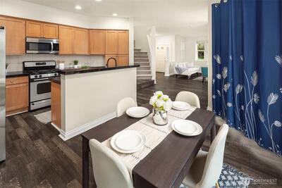 Situated in the heart of Redmond, this home impresses with a wide footprint and high ceilings that create a bright, open feel. The efficient 3 bed/2.5 bath floorplan features an oversized living and dining area that lives like a single-family home. Gleaming hardwoods on the main level are complemented by new interior paint and new carpet. The kitchen offers granite countertops, stainless steel appliances, a breakfast bar, and great flow for everyday living and entertaining. A convenient office nook supports work-from-home flexibility. Enjoy a side-by-side two-car garage, private yard, central AC, no rental cap, nearby parks and trails. Lake WA schools. Easy access to 520, Microsoft, Costco, Whole Foods and downtown Redmond. Pre-inspected.