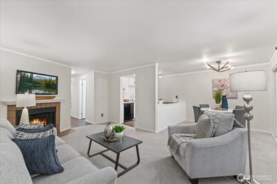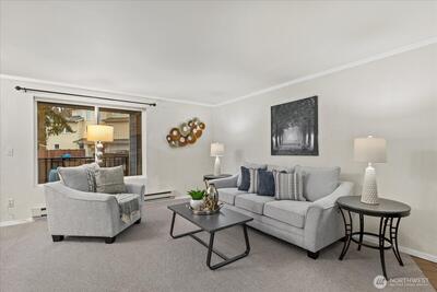 Hidden gem in the sought-after Ballinger Community! This updated condo offers a spacious, light-filled layout with big windows, brand-new carpet, and a cozy wood-burning fireplace. Enjoy an open-concept kitchen, generous bedroom(s) including thoughtful closet space, updated full bath, and in-unit washer/dryer with ample storage plus large exterior storage. Relax on your private patio or balcony with peaceful garden views. Well-maintained community with new roof, siding, and windows, strong HOA, no rental cap, no special assessment, private parking, and abundant guest parking. Prime Shoreline location near parks, trails, shopping, dining, transit center, and upcoming light rail. Excellent opportunity for homeowners or investors alike.