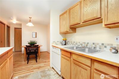 A commuter’s dream location—only 15 minutes from downtown Seattle and 8 minutes from SeaTac Airport. This spacious one-bedroom condo is bright, very quiet, and looks out onto the greenery. Oak laminate floors, custom window shades, an efficient updated boiler, and a brand-new dishwasher add modern comfort. The generous bedroom fits a king-sized bed and features a huge walk-in closet. In-unit washer and dryer, plus a private balcony with storage. Low HOA dues (no special assessments, no rental cap, pets Ok) include water, sewer, garbage, and insurance in a well-maintained community. Assigned parking with plenty of guest spaces. A block away from Boulevard Park Library, near parks and golf courses, in an up-and-coming neighborhood.