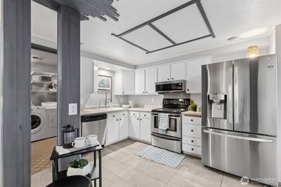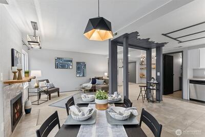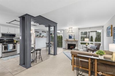 Be your own "landlord" or invest in this no-rent cap, upgraded 1184 sq/ft, 2bd/2ba handsome condo home with easy access to Northgate shops, eateries, light rail, SCCC, UW, and I-5. Prime SE facing/back, 2nd floor location for low traffic noise, trees. Secure your car in a single-car garage and find easy load/unload side access directly across from unit to the additional front parking space. Remodeled interiors create a flexible, open plan suited to many style Upgrades include Designer tones, new flooring, stainless appliances, painted kitchen, upgraded lighting/fixtures, custom closets and on-trend display shelving. Huge laundry/pantry too. Seasonal pool/spa/BBQ. Recent exterior building remodel. Value-priced, comfy, easy urban-living.