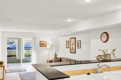 Why not have the FUN of an Alki Location, yet reside in a home that is refreshingly peaceful & serene? Spotless, 1-bedroom, 1-bath unit lives large w/ open floor plan, spacious bedroom, walk-in closet, & sliding glass doors to a patio. This unit sits almost at street level off of 30th-no stairs! Full-size washer & dryer in unit. 1 reserved parking space & storage area in secure garage. Rentals allowed. Pets allowed. Extra-large patio storage unit. Great location! Easy access to downtown Seattle & freeways. Travel along nearby Alki Trail to beach, Water Taxi, Luna Park Café, Jack Block Park & more! Strong, well-run HOA. Water, sewer, trash utilities included. This home will inspire you to walk, run, bike, swim or paddle!