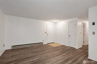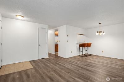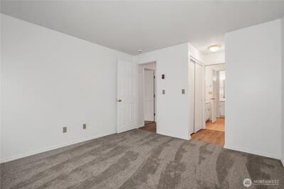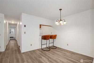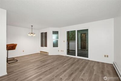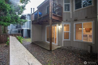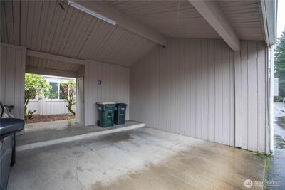 Cute first floor end unit condo refreshed and ready for you to make it your own. All freshly painted with new carpets in bedrooms, and newer windows and clean as a whistle! Handy kitchen with eat in bar, separate dining room. Slider opens to a private back deck area with room for entertaining and even has covered parking! Pets are allowed!! Location is close to I-5, shopping, dining, and everything you need. Don't miss out on this one.