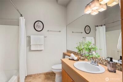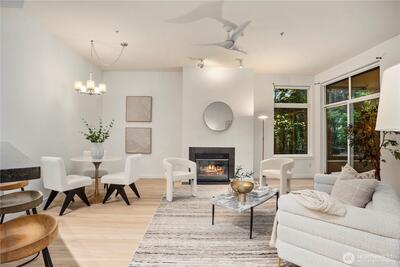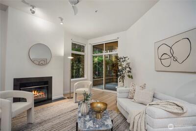 Stunning ground-floor condo in the heart of downtown Kirkland! Soaring high ceilings, big windows, brand-new flooring, fresh paint, and a fully renovated open-concept layout complete the space. The sleek chef’s kitchen features stainless steel appliances, granite countertops, and an extended bartop, perfect for hosting or entertaining. Enjoy the cozy gas fireplace, designated work-from-home space, and a private patio for PNW summers. The secluded primary suite offers a large walk-in closet. Includes 1 parking spot in secure garage plus in-unit washer and dryer. PRIME location—just steps to Kirkland Urban, Peter Kirk Park, the Marina, shops, dining, and quick 405 access. This one is a must see!