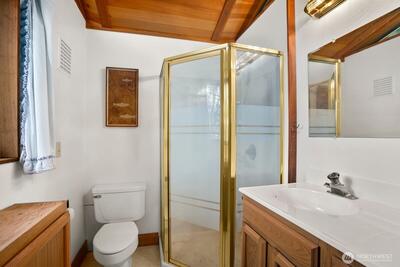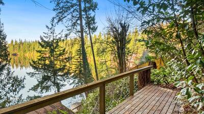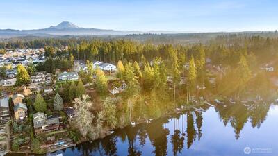 Spectacular Lake Wilderness waterfront lot with small cabin. Rare 80 feet of lake frontage, this exceptional property offers breathtaking water views and a peaceful natural setting. Fully fenced with double gates and excellent parking. Enjoy fishing, swimming and boating while you build your dream home. Located near golf course, pickleball courts and public park with boat launch, and Lake Wilderness Lodge.