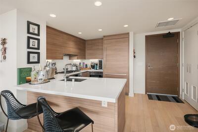 Iconic Space Needle and Elliott Bay views await you at Seattle’s most desirable urban address! This bright, open unit lives large with an integrated living/dining area spanned by full length wrap-around view windows. Step out and watch the ferries go by from your private balcony. Cooking is a breeze in the stylish kitchen with sleek European-inspired cabinetry, built-in Bosch appliances, and quartz surfaces. At night, watch the city lights sparkle over the water from your window-lined bedroom. Insignia’s world class amenities—including a pool, hot tub, sauna, 2-story fitness center, open air park, rooftop deck with lounge—are all waiting at your disposal. Rated a “Walker’s Paradise,” the best of Seattle is just steps from your front door!