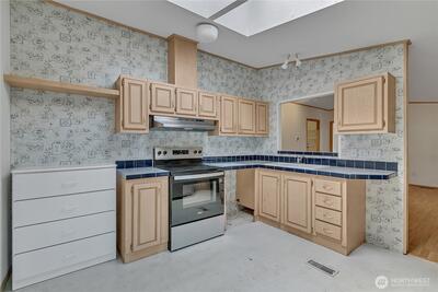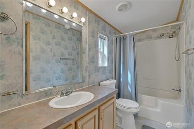 Welcome home to this bright, cozy 3 bedroom,2 bathroom home in the beautifully updated 55+ Friendly Ridge Park! With large closets and 1,120 sqft of thoughtfully designed living space, this home blends comfort and convenience. Enjoy natural light from skylights, a warm interior, and easy-maintenance flooring throughout. All appliances stay! Relax on the covered deck, let your small dog roam in the fenced yard, and take advantage of covered parking and a handy storage shed. Garden tub in the primary, full tub in guest bath, plus 3 exterior doors and a mudroom for added functionality. Live minutes from shopping, restaurants, and medical care—this is easy living at its best!
