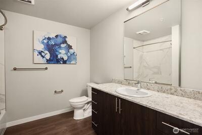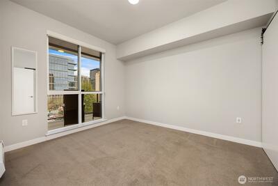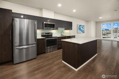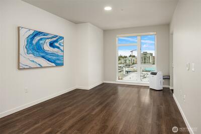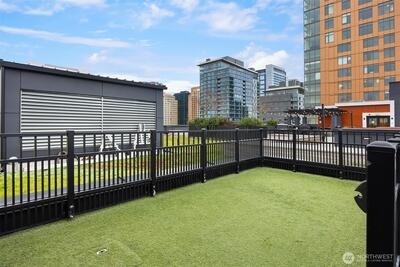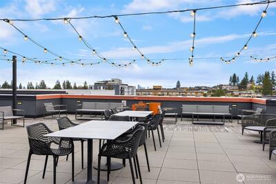 Modern luxury east-facing condo offering a bright, open living experience with unobstructed city views and a private balcony. The thoughtfully designed interior features quartz countertops, stainless steel appliances, a spacious kitchen island, sleek cabinetry with under-cabinet lighting, a custom-made bedroom closet, and newly replaced dishwasher and microwave. Expansive windows bring in abundant natural light while maintaining privacy. Residents enjoy a refined rooftop retreat with open seating, BBQ area, fire pit, and pet area, plus concierge service, clubhouse, dog wash station, bike storage, and secured garage parking. Exceptional walkability with easy access to Bellevue Square, shopping, dining, cafés, and nearby parks. No rental cap.