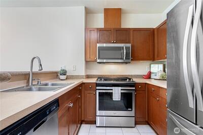 Discover the best of Westlake in this bright corner 1-bedroom with oversized windows, 9' ceilings, fresh paint, newer carpet, and stainless steel appliances. The open layout features whole-house radiant heat and two private decks—perfect for entertaining. The spacious bedroom includes a large walk-in closet; the bathroom offers ample cabinet space. Enjoy in-unit W/D, extra storage, secured entry, and garage parking. Building amenities: rooftop deck (great for NYE fireworks), fitness room, and clubhouse. Walk to Amazon, Facebook, Lake Union Park, SLU, restaurants, Lower QA, and public transit. No rental cap! HOA dues include water, sewer, garbage, gas, earthquake insurance, and internet.