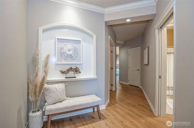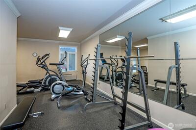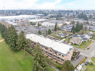Light & bright top-floor end unit in Tacoma's Allenmore East Condominiums. Private balcony overlooking Allenmore Golf Course. ZERO stairs from secure common parking garage to the unit. Welcoming lobby entrance & common exercise room. Secure building with a well-maintained, self-managed HOA. Inviting 2 bedroom +den/office, 2 bathroom unit. Warm, cozy radiant heated floors throughout and gas fireplace in the living room. Well-appointed kitchen with upgraded appliances and granite countertops. Spacious primary suite with walk-in closet. Large laundry room with extra cabinetry and a handy utility sink. Includes two parking spaces in the common garage plus a private storage unit. Clean, comfortable, and easy living—come see!