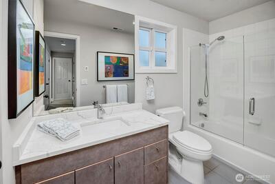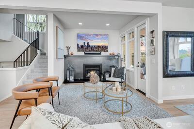 Experience extensive high-end upgrades in this refined Kirkland townhome just steps from the Cross-Kirkland Corridor & Google! The chef’s kitchen is a showpiece with quartz counters, a custom waterfall island, glass subway tile, and a new wine bar with fridge. An architectural fireplace feature wall with custom iron mantel anchors the great room. Relax in the large bonus room with new luxury vinyl wood floors and lighting. Additional upgrades include updated bathrooms with Toto toilets, new carpet, and upgraded shades with blackout options. Completing the package: a fresh interior repaint, oversized 2-car garage with new shelving, new heat/AC, new hot water heater, and landscape lighting. Minutes to the waterfront and downtown!