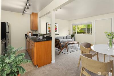 Experience the vibrant spirit of Fremont in this charming 1-bedroom condo at Live Fremont! Originally built for Seattle World's Fare, this unique condo is nestled in a lively, welcoming community of Fremont. With no rental cap, this home offers endless possibilities for both living and investing. Bask in natural light that fills the open layout, enjoy a modern kitchen with stainless steel appliances, and imagine creating memories in the spacious living area. Step outside and feel the energy of Fremont—trendy shops, delicious restaurants, lively bars, and easy transit are all just moments away. With secure entry and inviting amenities like the outdoor pool, this is more than a home—it’s your gateway to Fremont’s best.