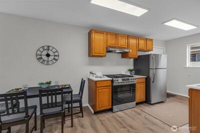 Completely updated Townhome just minutes from downtown Seattle, Burien & West Seattle. Enjoy the private deck with a view, all-new stainless steel appliances & sinks, new countertops & fresh paint throughout, new flooring, and light fixtures. The Spacious great room with lots of naturel light and gas fireplace. Both bedrooms are spacious with built-ins or a reading nook. The kitchen offers ample cabinet space for storage. Other features include wood doors, gas heat, and a gas water heater. There are two covered parking spots and a laundry room with new washer and dryer. Don't miss the storage space behind the reserved parking space; this room has been sheet-rocked and has power and water.