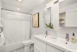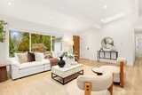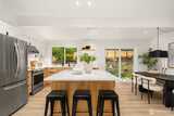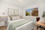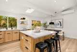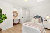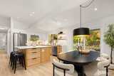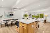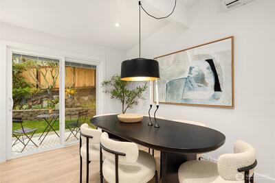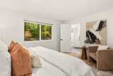 Stunning mid-century modern ranch East of Market home, fully reimagined with designer finishes throughout located on a private cul de sac. The open great room wows with vaulted ceilings and skylights, flowing seamlessly from the living area through the chef’s kitchen — featuring updated oak cabinetry, quartz waterfall island, open shelving, and premium stainless appliances. The dining area anchors the space with a statement black pendant, room for an 6-top table +sliding glass doors that open directly to the backyard patio — perfect for indoor-outdoor entertaining. Multiple living spaces offer incredible flexibility, each styled with warm, organic materials that feel both elevated and livable. Expansive sliders bring the outside in, opening to a private, fully-fenced yard with terraced stone garden beds and mature, curated landscaping. Three spacious bedrooms each carry their own distinct character, from floral wallpaper accents to built-in desk nooks and louvered closet doors. U