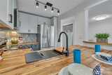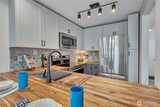 This lovely remodeled townhome offers plenty of style, space, privacy and convenience. A completely remodeled kitchen includes gorgeous butcher block counters, new stainless steel appliances, and soft close cabinets. Open concept layout, living and dining rooms allow easy access to the large backyard and garage. Upstairs, the primary bedroom easily fits a king bed and dressers. A wall of closets holds even more. The second bedroom generously accommodates beds and desks alike. The updated full bathroom feels fresh and modern. A large laundry room downstairs provides a beautiful washer and dryer, great storage, and another half bath. The backyard is fully fenced with locking gates for easy access and security. Follow a pleasant brick path to the garage for your car, decor and toys. The new garage door, with remote, makes secure parking a breeze. Low HOA fee covers water, sewer, and garbage service. Conveniently located near restaurants, services, schools and transit, this is a great pl