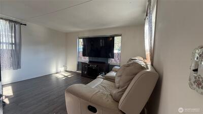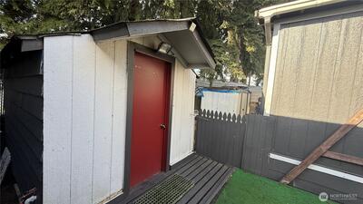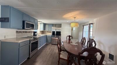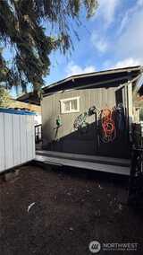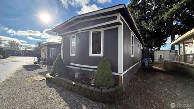 Great opportunity to own a well-maintained and versatile manufactured home! This charming single-wide offers 2 spacious bedrooms and 1 full bathroom, featuring laminate hardwood flooring throughout. Enjoy a spacious kitchen with stainless steel appliances, combining style and functionality. The property includes two storage units, one fully finished with water, electricity, and laminate flooring, ideal for a home office, or studio. Outdoor features include a playset and parking for up to 4 vehicles. Conveniently located near freeways, the Kent train station, and just 20 minutes from Seattle, this home offers comfort, convenience, and great value. Schedule your showing today!