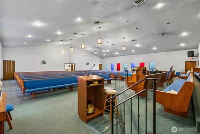 One-of-a-kind 6,669 SF single-story church building constructed in 1989, offering a rare ownership opportunity in the desirable Rainier Valley / South Beacon Hill area of Seattle. Situated on a 35,604 SF (.82-acre) parcel, the property includes approximately 32 uncovered on-site parking stalls with dual access points, providing convenient ingress and egress. This well-maintained, fully functional facility is designed to accommodate a wide range of institutional and assembly uses. Interior features include a spacious sanctuary with baptismal pool, kitchen, dining/fellowship hall, men’s and women’s hall restrooms, 3-additional bathrooms, and 6-additional rooms suitable for offices, classrooms, meeting space, or storage. The flexible floor plan supports both large gatherings and smaller group activities. Originally designed for church services and ceremonies such as weddings and funerals, the property may also be suitable for continued religious use or potential adaptive reuse, includ