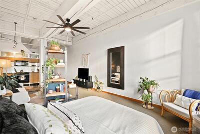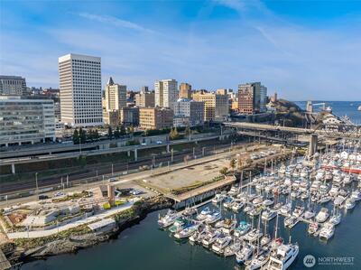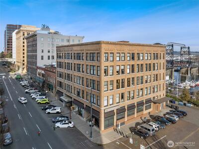 Move-in ready condo with stunning views of Mt. Rainier, the Waterway, and the Tacoma Dome! Located in Cliff Street Lofts, this home blends classic charm with modern living in downtown Tacoma.The bright unit features 14-foot ceilings, exposed industrial beams, and expansive windows. Enjoy an updated kitchen, new light fixtures, built-in curtains, ample storage, and a walk-in closet with a washer/dryer combo.Relax on the rooftop deck with 360-degree views of the city and Commencement Bay. Just steps from entertainment, dining, shopping, UW Tacoma, and the Link Light Rail, with easy access to I-5 and the Sounder. Urban living at its best!