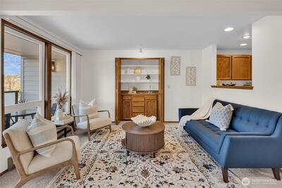 Stylish and move-in ready, this bright 1-bedroom, 1-bath condo features an open-concept layout with Fresh interior paint and New flooring throughout. A midcentury vibe shines with a built-in wet bar, in-unit laundry, dedicated storage, and one designated parking space. Enjoy indoor-outdoor living on your brand-new private covered balcony with additional storage. The well-maintained condo building has seen numerous HOA updates, including recent building exterior recladding and new windows, reflecting strong stewardship and pride of ownership. Experience downtown Mercer Island living at its best—stroll to the Farmer’s Market, browse Island Books, grab pastries at Macrina Bakery, or relax at Mercerdale Park. Pet-friendly building with no rental cap, making this an excellent opportunity for downsizers or investors seeking low-maintenance living. Ideally located in the edge of downtown Mercer Island, just minutes to I-90, Seattle, Bellevue, parks, and the upcoming light rail station.