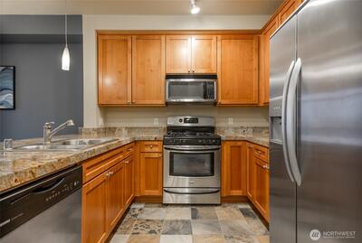 Welcome to The Approach in the heart of Newcastle! Pristine, open-concept 1Br/1Bath offers spacious dining and living area, 9 foot ceilings, cozy fireplace, ample kitchen with granite counter tops, S/S appliances, breakfast bar and in-unit washer/dryer. Good size bedroom has plenty of closet space and well-appointed bathroom. Two assigned parking spaces (1 in secured garage & 1 uncovered) Enjoy the entertainment-ready balcony and take in the territorial views. Secured building features inviting lobby & furnished courtyard. Phenomenal location within walking distance to shopping, restaurants and just moments to golf club, area trails, YMCA & parks. Easy access to I-90, 405, SeaTac Airport, Bellevue. No Rental Cap! Issaquah Schools.