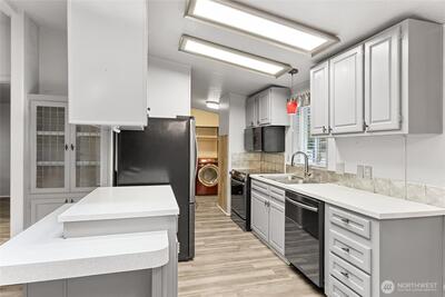 Welcome home to easy, low-maintenance living in the highly desirable Friendly Ridge 55+ community. This beautifully updated manufactured home offers a bright, open layout with modern finishes throughout - perfect for those looking to downsize without sacrificing comfort or style. Inside, you’ll find newer flooring, fresh neutral tones, and a thoughtfully updated kitchen featuring sleek countertops, stainless appliances, and ample storage. The open living and dining areas create a welcoming space for everyday living or hosting friends. The spacious primary bedroom offers a peaceful retreat, while the updated bathrooms showcase contemporary vanities, lighting, and a walk-in shower for added comfort and accessibility. Additional bedrooms provide flexibility for guests, hobbies, or a home office. Outside, enjoy covered parking, a private patio area, raised garden beds, and a storage shed. The home’s exterior is well maintained and set within a quiet, established community surrounded