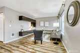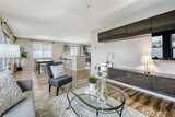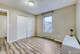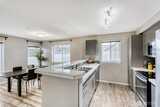 Bright, top-floor 2-bedroom / 2-bath corner home offering nearly 1,000 sq ft of airy, light-filled living space. The open, contemporary design showcases a beautifully updated kitchen with newly refaced cabinetry, stainless steel appliances, fresh countertops, and new flooring throughout. Perfect for entertaining, the layout provides generous room for a large dining table plus extra seating at the kitchen counter for casual gatherings. The primary suite features a renovated full bathroom and ample closet storage. A spacious second bedroom sits conveniently beside a full guest bath, making it ideal for visitors or a home office. Enjoy the convenience of an in-unit washer and dryer, along with one covered parking space. Commuting is a breeze with quick access to I-5, Highway 99, public transit, and Light Rail. Just minutes to Northgate shopping, dining, and the Kraken Community Iceplex. Pet-friendly boutique community with no rental cap — a fantastic opportunity for both homeowners and