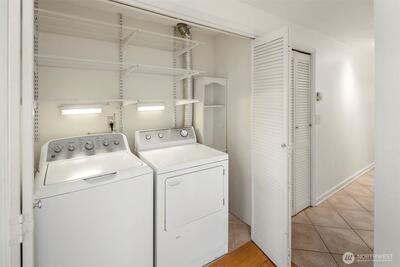 This sweet east facing condo offers all the perks you're hoping for! A proper one bedroom and full bathroom, plus the den, ideal for working from home, crafting, you name it. Your kitchen offers stainless appliances and sits open with your bright living room, with a sweet balcony that offers downtown Seattle views. There is a spacious walk-in closet in the primary bedroom, plus a full size in-unit washer/dryer, and a convenient and well-sized parking space in the gated garage! Close to beloved Luna Park Cafe and steps to the convenient C Line. This lovely West Seattle home is the perfect entry into ownership!