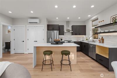 **Brand New** This stunning modern home is located on a tranquil street just moments away from the lively Westwood Village. Step inside to discover a bright and airy open-concept living and dining area on the main floor, elegantly designed to enhance your lifestyle. A convenient guest powder room adds practicality, while a sliding glass door seamlessly connects the indoor space to a private, fully fenced patio—perfect for hosting gatherings or enjoying quiet moments outdoors. The gourmet kitchen is a chef's delight features beautiful full-height backsplash, quartz countertops, pop-up counter outlets, pantry, ample counter space, soft-close cabinets, LED lighting, and LG appliance package. Upstairs, the primary suite offers a walk-in closet, dual sinks, LED lighting, and heated tile flooring—perfect for those chilly mornings. Two additional bedrooms, full bathroom, and dedicated laundry room. Enjoy quality LVP flooring throughout, year-round comfort mini-split heating/cooling