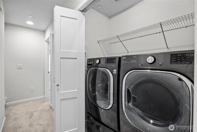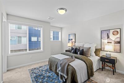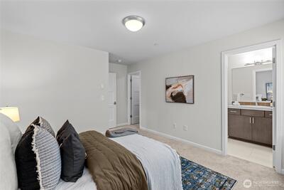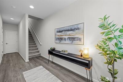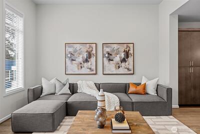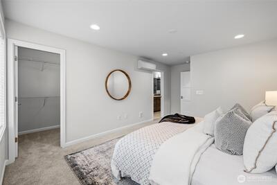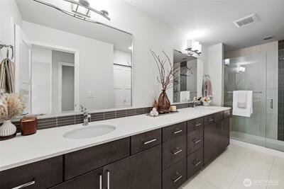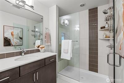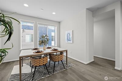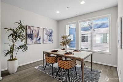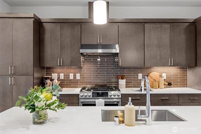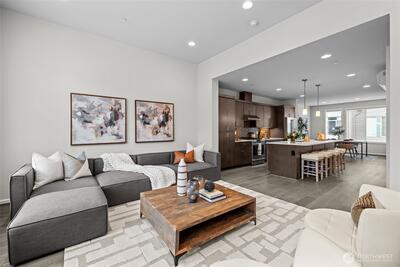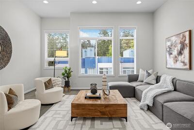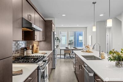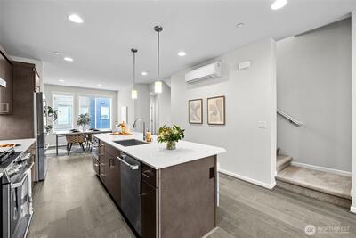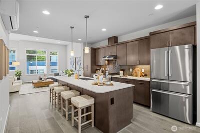 Stunning 2-bedroom en-suite townhouse ideally situated in the highly sought-after Kirkland/Juanita community. Thoughtfully designed with modern finishes and an open-concept layout, this home is perfect for both entertaining & everyday living. The expansive chef’s kitchen features stainless steel appliances, a gas range, pull-out shelving, abundant soft-close cabinetry, and generous quartz counter space. Bosch refrigerator and Café Stove/Oven, Microwave and Dishwasher. Living room is stunning with 11' tall ceilings giving you an elevated airy feel. Spacious dining area is perfect for hosting! Enjoy seamless indoor-outdoor living on the rooftop deck with water, electrical and gas available —ideal for relaxing, entertaining or dining al fresco. A spacious 2-car garage with EV Charger, heated storage closet, indoor water spigot, plus an extra storage space. High performing Daikin mini-splits in main living and primary bedroom for year-round comfort. Located near Lake Washington, J