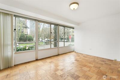 Fantastic value in a classic Mid-Century Modern, steel and concrete mid-rise in Seattle's historic First Hill neighborhood. This light filled, southeast corner unit is incredibly spacious and flooded with natural light with walls of windows, oak parquet floors, updated kitchen and bathrooms, and abundant in-unit storage. Common amenities include beautiful heated swimming pool, bike storage, common EV Charger, and car washing station. Close to grocery stores, restaurants, parks, museums, hospitals, public transit, downtown, and SLU. Secure garage parking, plus storage unit. Radiant heat, hot water, Google Fiber internet & on-site manager included in HOA dues. No rental cap!
