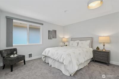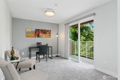 This stunning remodel of a light and bright top-floor corner unit welcomes you into a spacious floorplan w/sq footage typically reserved for a two-bedroom. With OVER $100,000 invested in high-end updates, this one-bedroom residence features an additional, large flex room that leads to a private deck overlooking the grounds and river trail The open “great room” concept is enhanced by a fireplace, while the unit also includes covered parking and a secured storage room on the ground floor. Located in the Sammamish Waterway community, which boasts strong reserves and an updated exterior envelope, this unit benefits from NO RENTAL CAP and exceptional access to trails, parks, shopping, major employers, & freeways—making it a rare & valuable find!