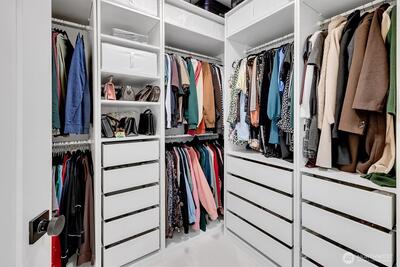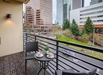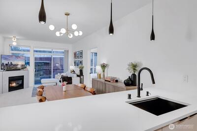 Rare true 3-bedroom, 3-bath condo in the heart of Downtown Bellevue, offering a quiet and private corner-unit setting with exceptional upgrades throughout. The show-stopping kitchen was custom designed by Swede and features Caesarstone countertops + Dekton Arga backsplash, a large walk-in pantry, and premium Wi-Fi–enabled appliances including a Bosch 800 Series induction cooktop and dishwasher, Liebherr custom-panel integrated refrigerator, GE touchscreen wall oven, and Faber Inca integrated range hood. All bathrooms have been fully remodeled with new flooring, quartz countertops, vanities, toilets, mirrors, and fixtures. Additional updates include new luxury vinyl wood flooring, new carpet, fresh interior paint, updated lighting, new trim and millwork, custom closet systems, new fireplace tile, and new window shades and blinds. A Miele washer and dryer add everyday convenience. This rare floor plan includes TWO SPACIOUS PRIMARY SUITES, a private balcony, and secured building access