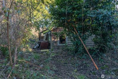 Discover a unique opportunity to own a vacant land parcel offering beautiful water views and endless potential. The property features an old cabin nestled on the site, providing a rustic presence and a glimpse into the land's history. Whether restored, repurposed, or removed to make way for a new vision, the cabin offers flexibility for future plans. One of the last few remaining vacant parcels in the desireable Ellisport community, just steps away from the historic KVI beach, one of the last remaining salt marshes in the southern Salish Sea.This lovely property is surrounded by natural beauty, rich history, and scenic views of the water and mountain, making this an ideal setting for someone with a dream and a vision of what could be. Complete with WD19 water connected to the system by a 5/8" meter, and electric is in the street. Soil studies have proven favorable for septic, but buyer will need to conduct their own studies as to an approved septic design and the potential to remodel t